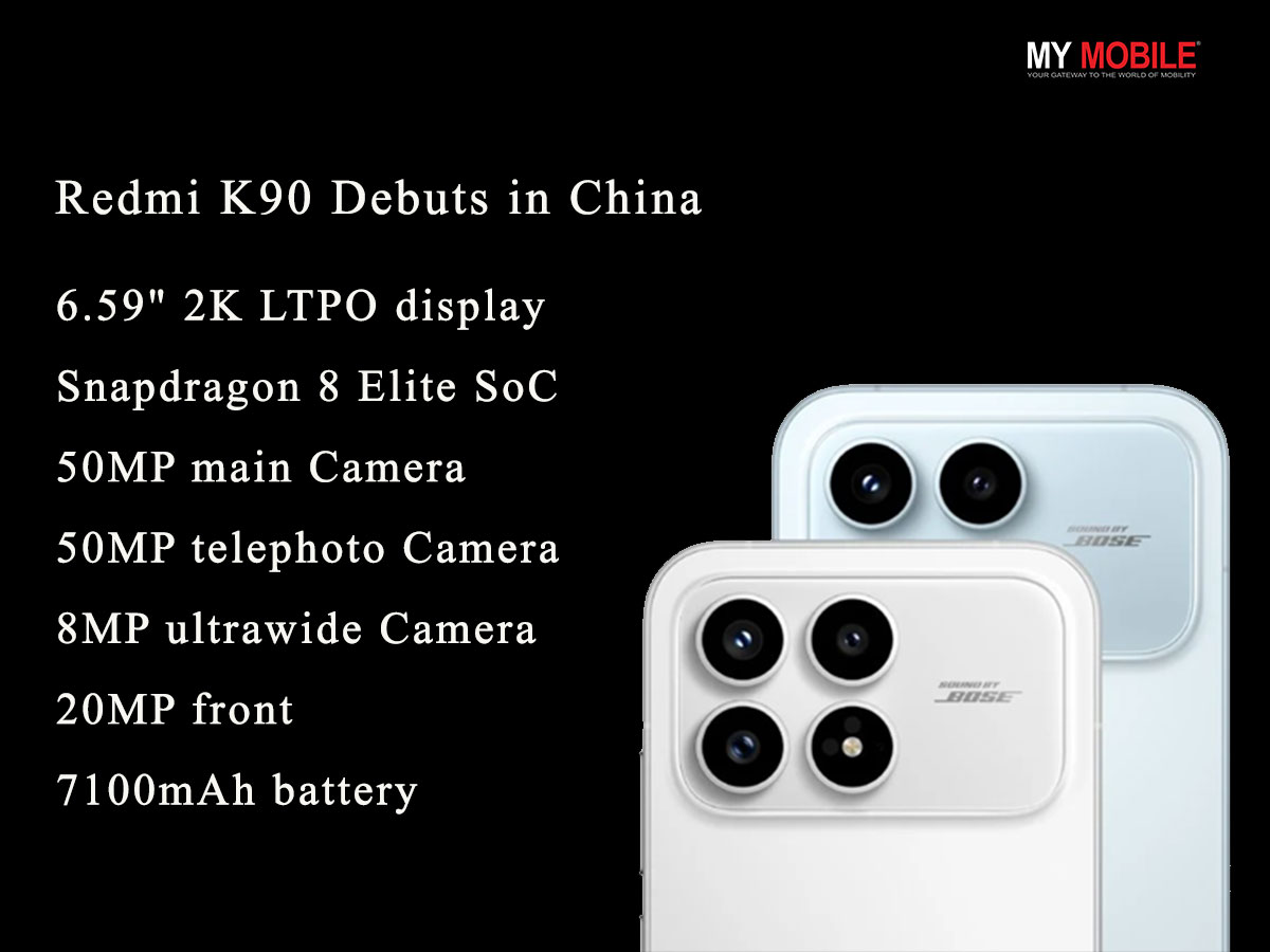 - The standard Redmi K90 offers a 2K LTPO display, a Snapdragon 8 Elite chip, Bose-tuned dual speakers, and a 7100mAh battery with 100W fast charging.