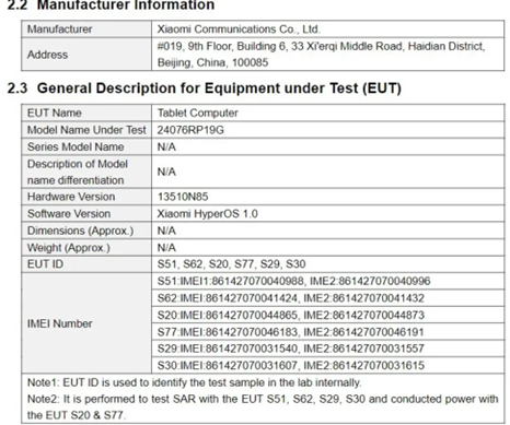 This revealed that it will run Xiaomi’s latest HyperOS 1.0 and support 4G connectivity with various FDD LTE bands.