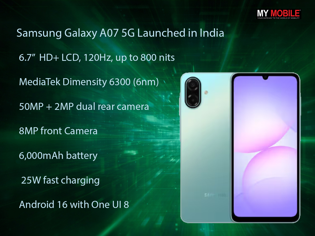 - Samsung Galaxy A07 5G launched in India at Rs 15,999 for 4GB + 128GB.