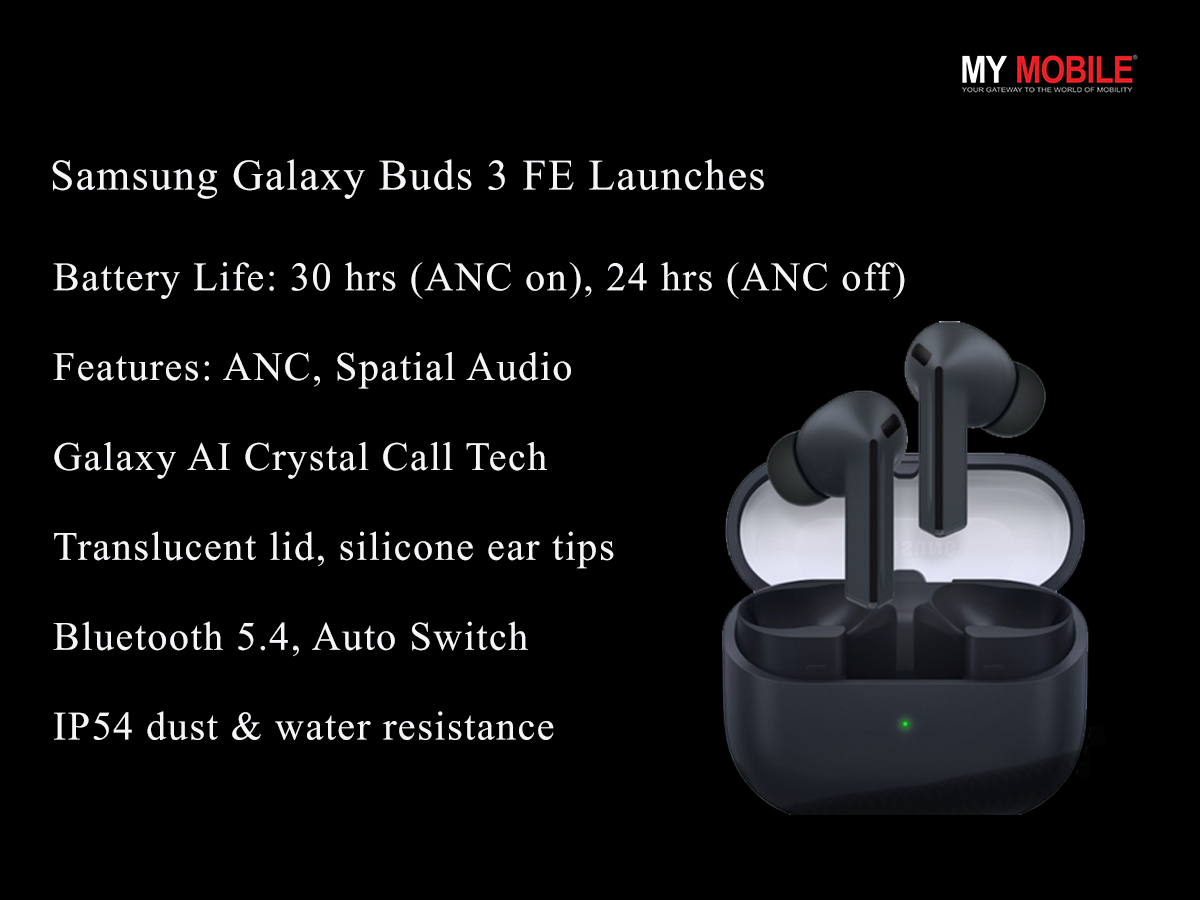 On the battery front, the Buds 3 FE can last up to 30 hours with ANC enabled and 24 hours without it. Other key features include Bluetooth 5.4 connectivity, an IP54 rating for dust and water resistance, and Auto Switch for seamless multi-device connection.