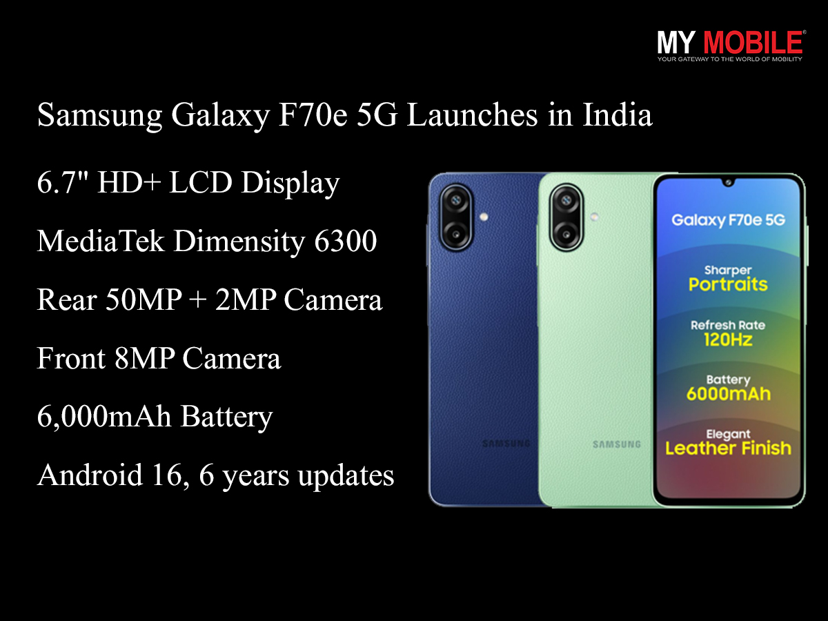 - Samsung has introduced the Samsung Galaxy F70e 5G at ₹12,999 for 4GB+128GB and ₹14,499 for 6GB+128GB.