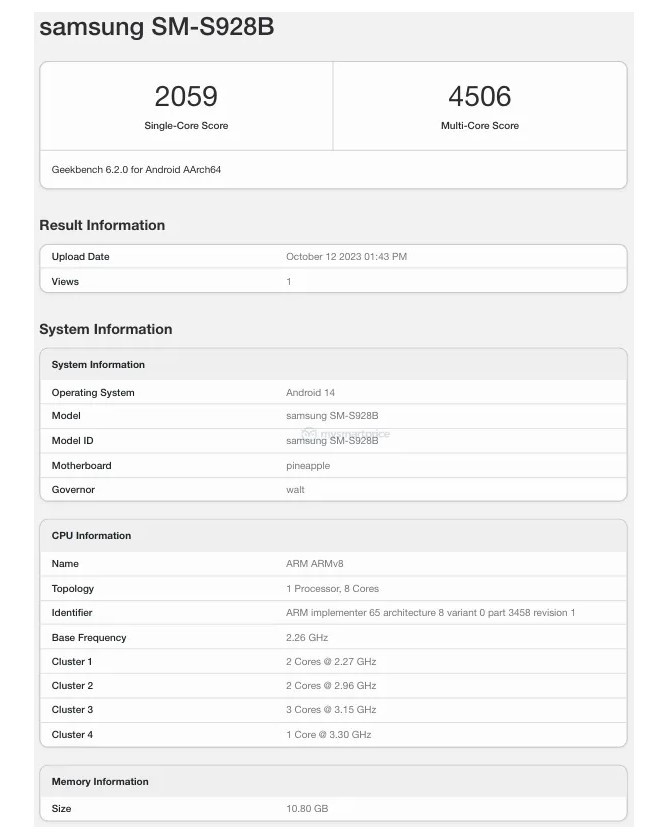 Galaxy S24 Ultra Possible Geekbench Scores