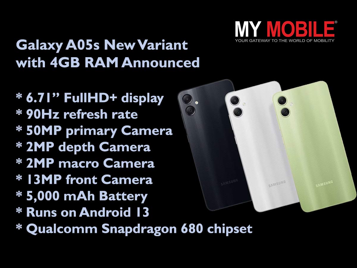 - The Galaxy A05s new variant features 4GB RAM and 128GB storage, priced at Rs 13,499.