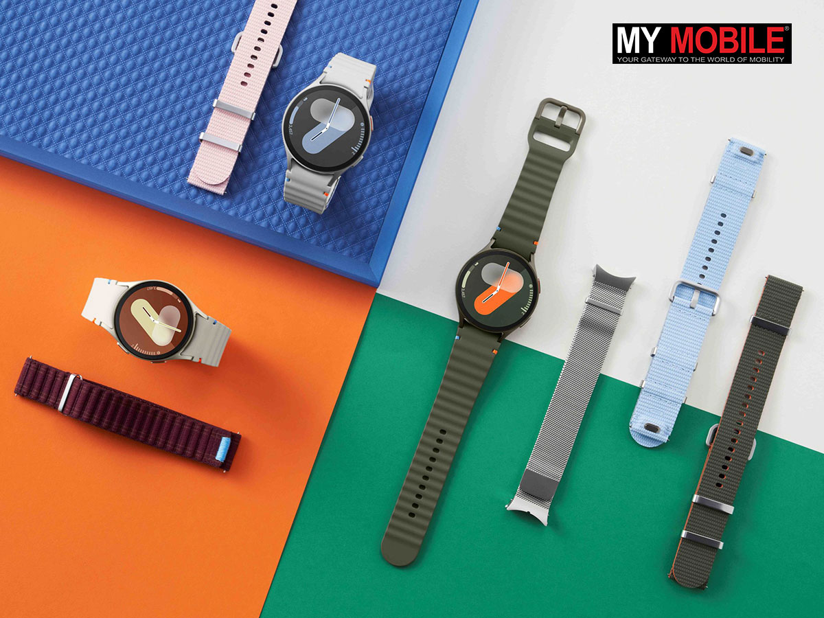 The Galaxy Watch 7 offers a 1.3-inch or 1.5-inch Super AMOLED display, Exynos W1000 processor, 2GB RAM, 32GB storage, advanced health monitoring features, and water resistance of 5ATM + IP68.