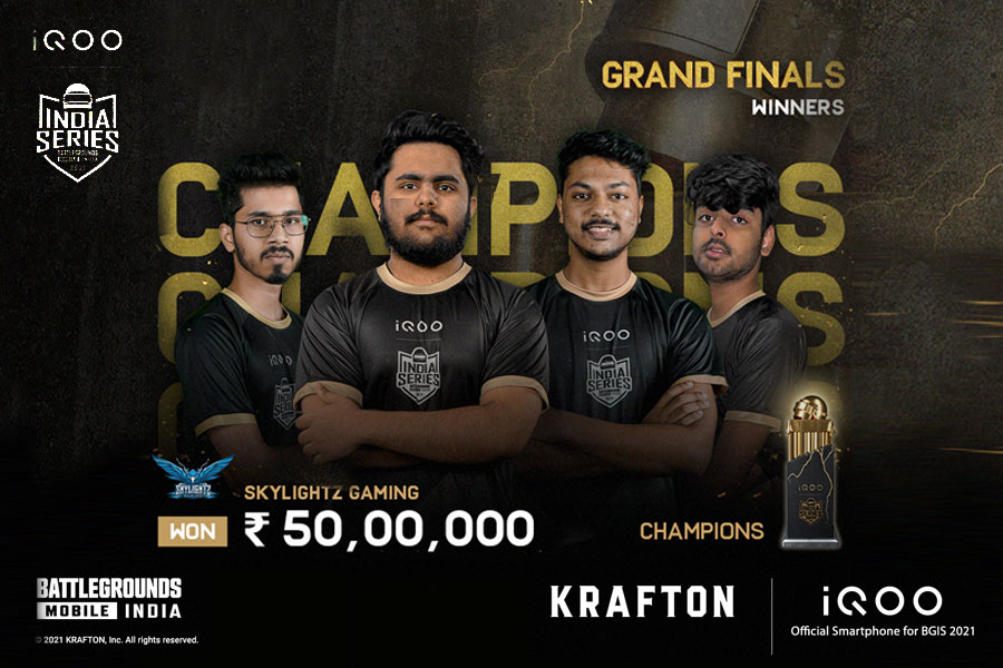 The month long iQOO Battlegrounds Mobile India Series 2021 came to a nail-biting finish last night with Skylightz Gaming emerging winners. They are the first champions of the largest and first ever Battlegrounds Mobile Tournament conducted in India.