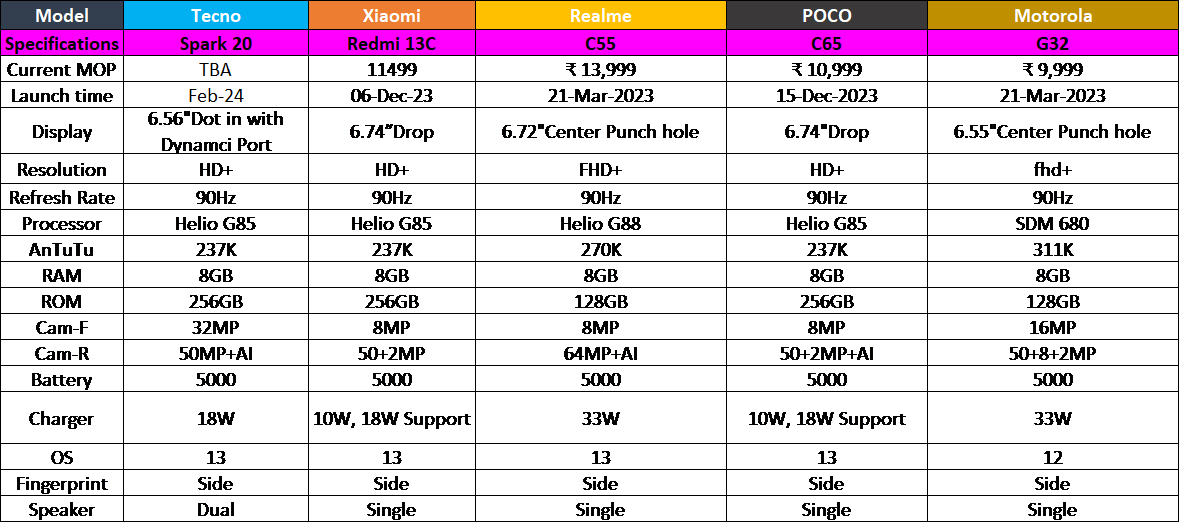 | SPARK 20 (8+128GB) | ₹10499 | ₹1000* | ₹9499 |