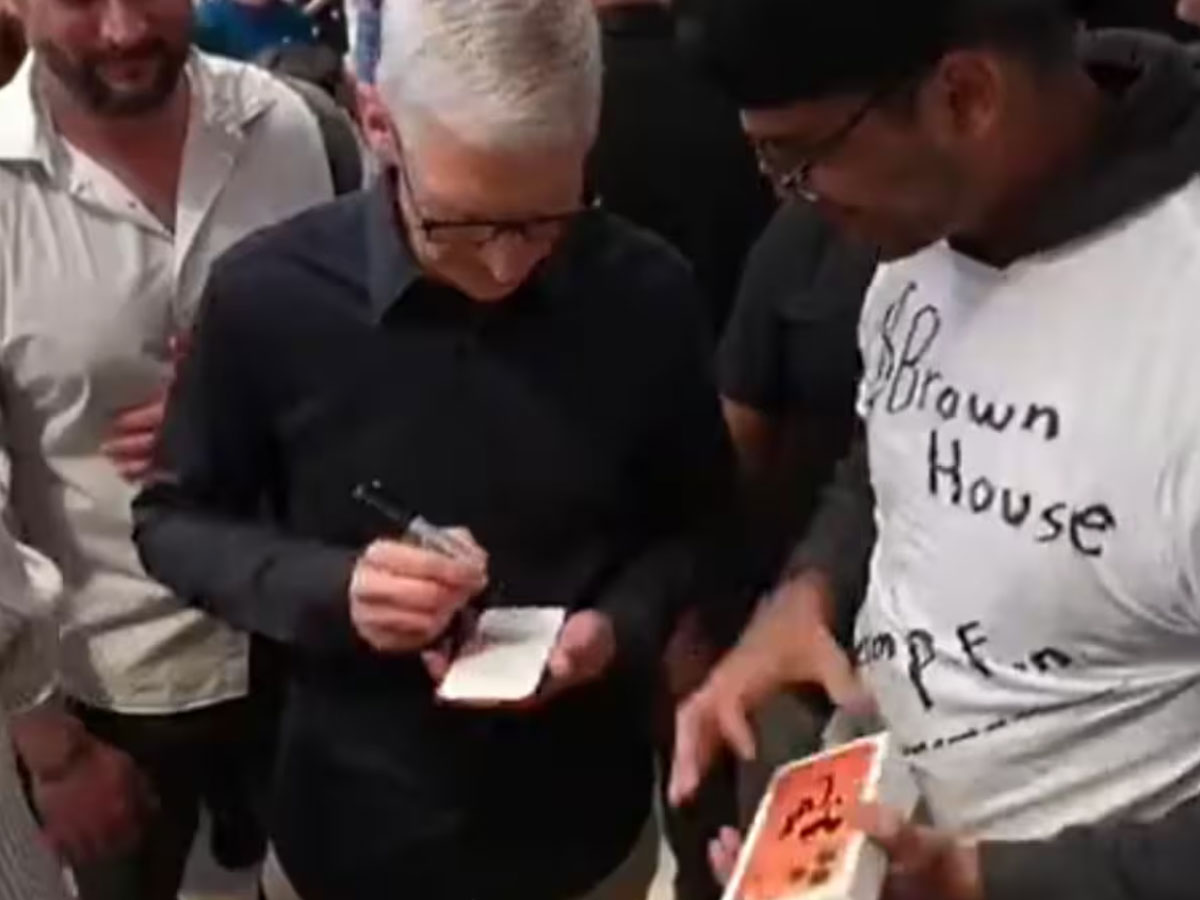 Some users quipped that the fan had performed a “drop test” in front of Tim Cook, while others couldn’t believe he missed the chance to get the iPhone itself signed.