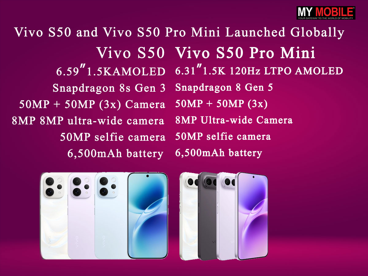 - Vivo S50 Pro Mini – 6.31-inch LTPO AMOLED, Snapdragon 8 Gen 5, same 6,500mAh battery with 90W wired + 40W wireless charging and IP68/IP69 rating.