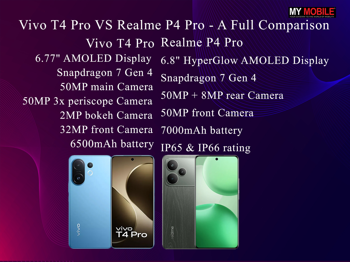 Here is a comprehensive comparison between the newly launched Vivo T4 Pro 5G and Realme P4 Pro.
