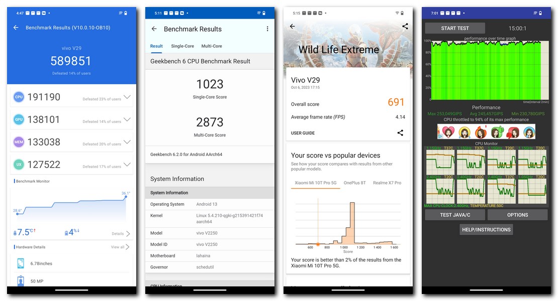 On the other hand, while the V29’s Snapdragon 778G with its 2.4GHz Octa-core processor and Adreno 642L GPU is no slouch, it’s evident that the V29 Pro, with its advanced Dimensity chipset, significantly outstrips the V29 in terms of raw performance and efficiency