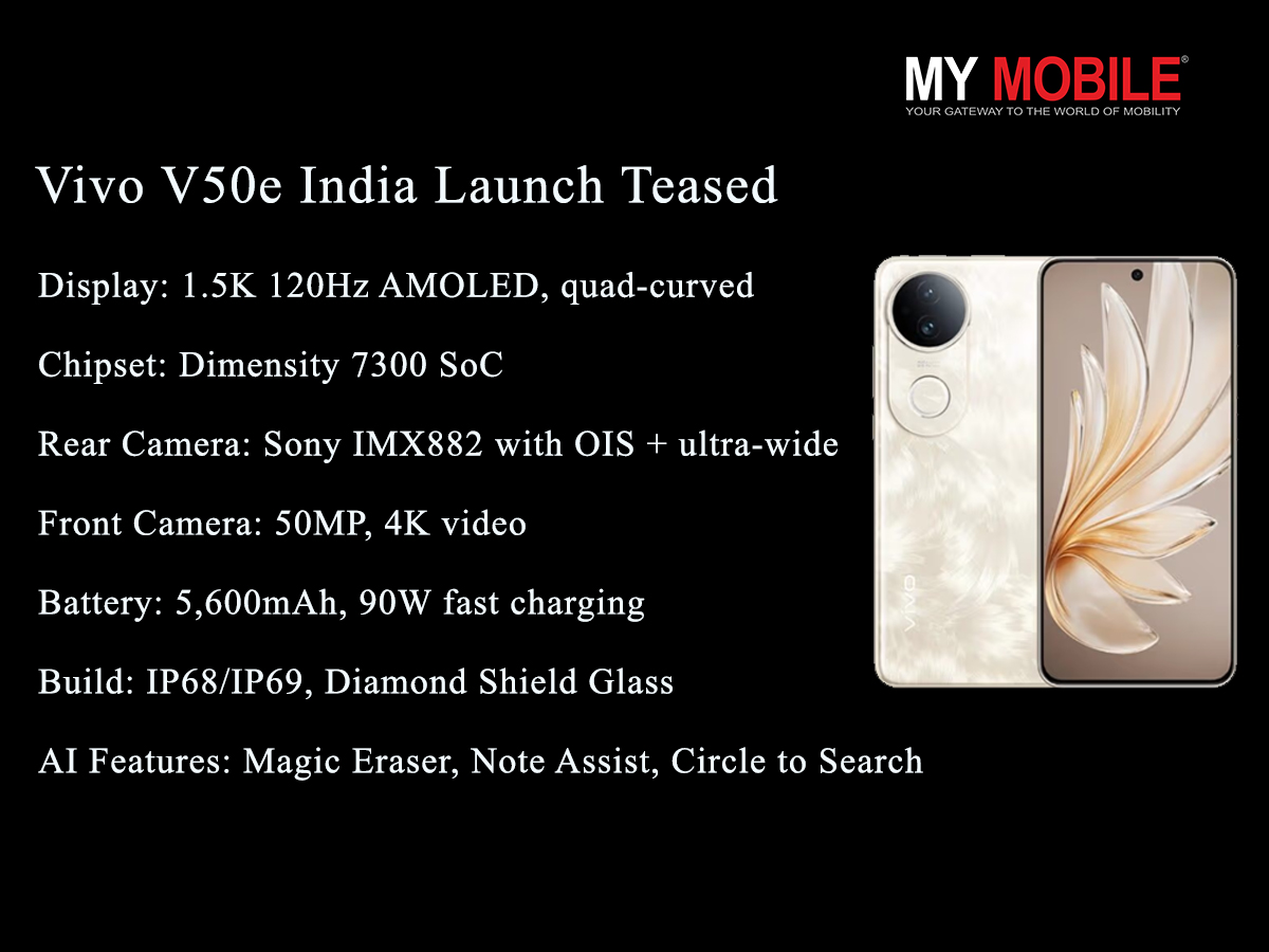 The Vivo V50e will come with several AI-powered tools, including Image Expander, Magic Eraser, Note Assist, Transcript Assist and Circle to Search.