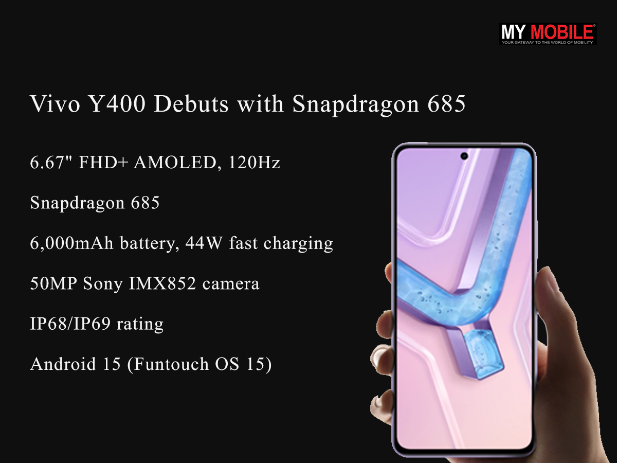 Answer. The Vivo Y400 is powered by the Snapdragon 685 chipset.