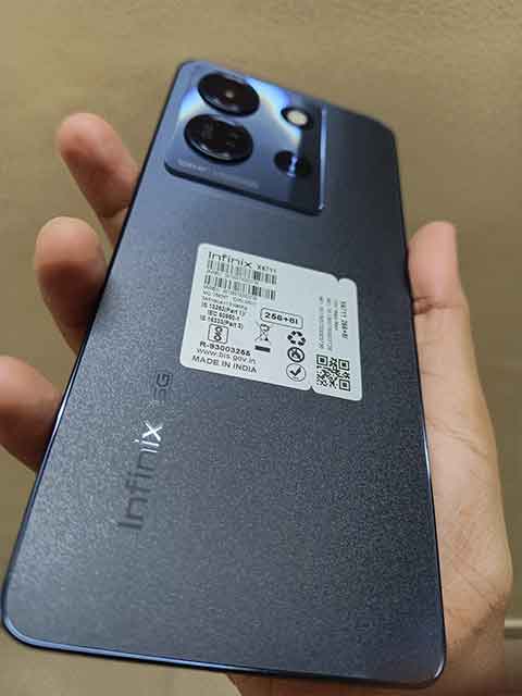 Infinix Note 30 5G – Design The Magic Black colour variant that we had for this review instantly feels attractive to hold. The boxy body and glittering yet somewhat matt finish of the back panel makes it look both classy and jazzy at the same time.