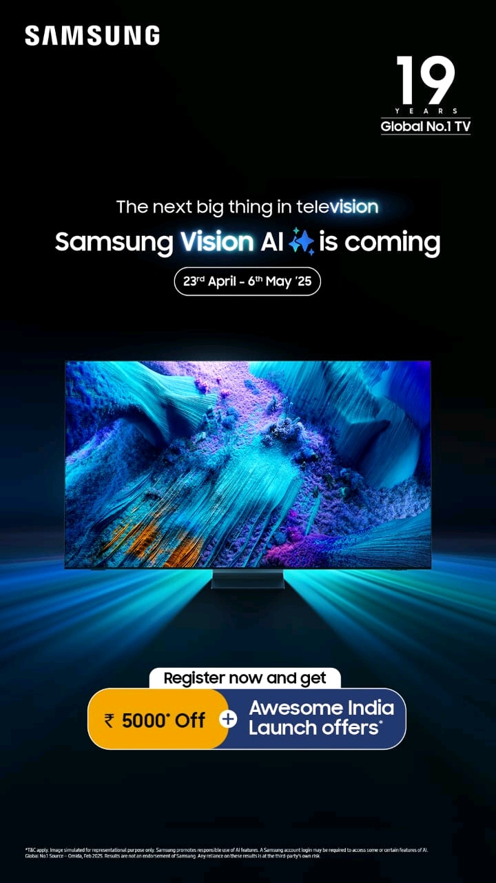 • INR 5000 discount on registration • Available for Neo QLED, OLED, and QLED AI TVs • Additional launch offers on purchase • Registration open on Samsung.com