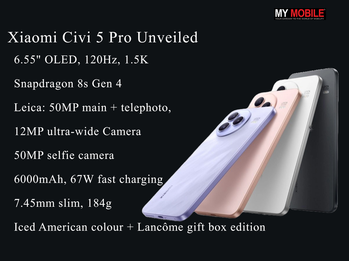 • Xiaomi Civi 5 Pro launched featuring a 6.55-inch quad-curved OLED display and a stylish metal frame with the unique “Iced American” colour option.